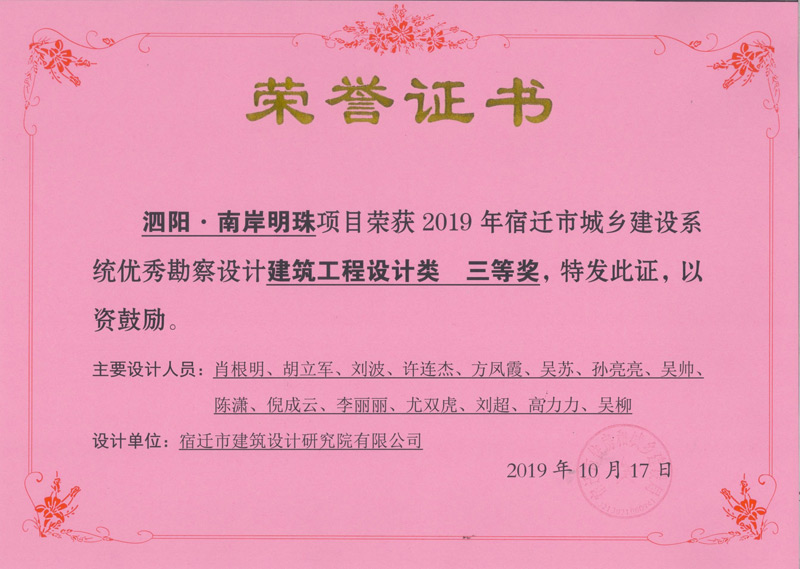 泗陽.南岸明珠建筑工程設計三等獎